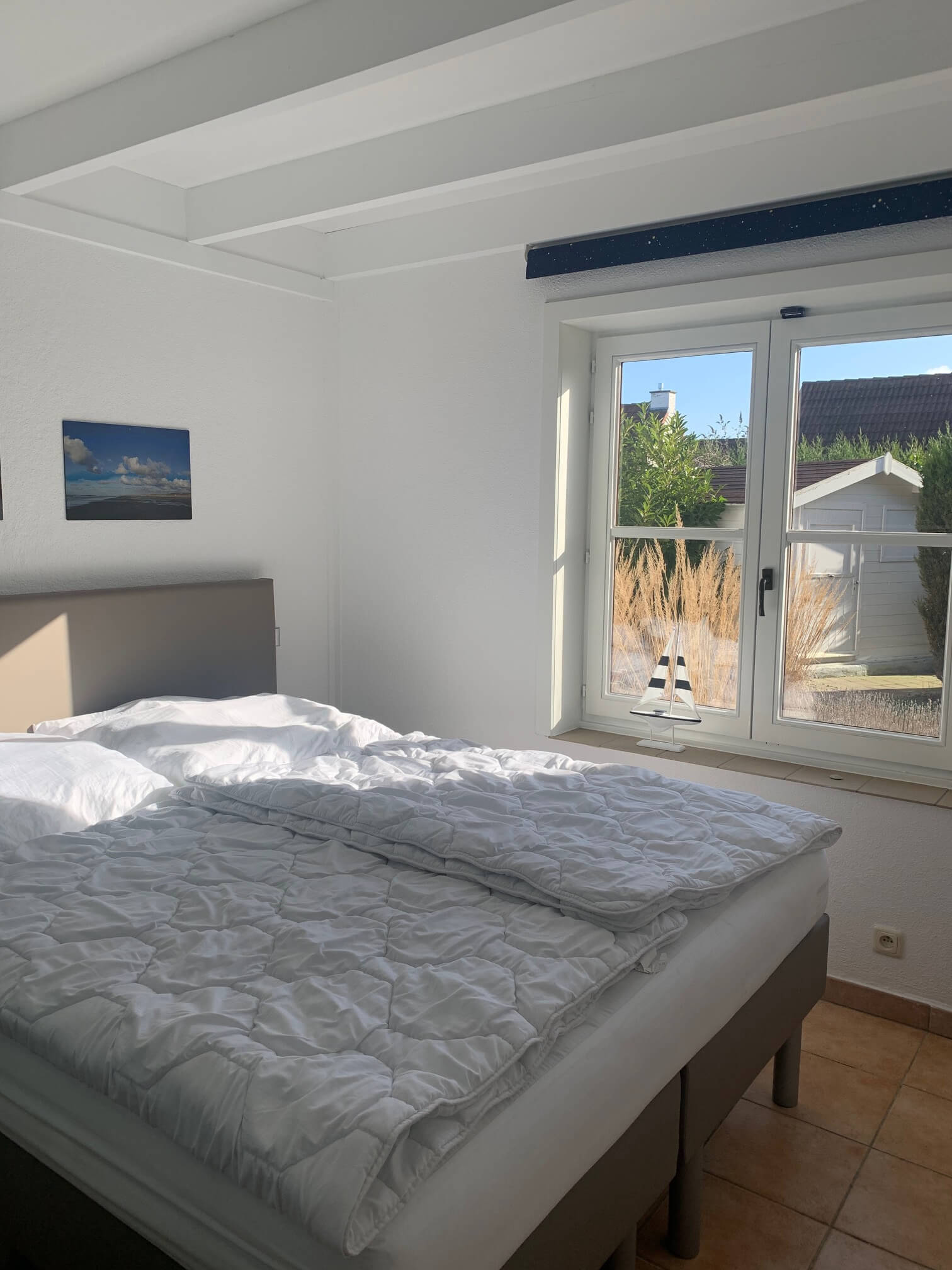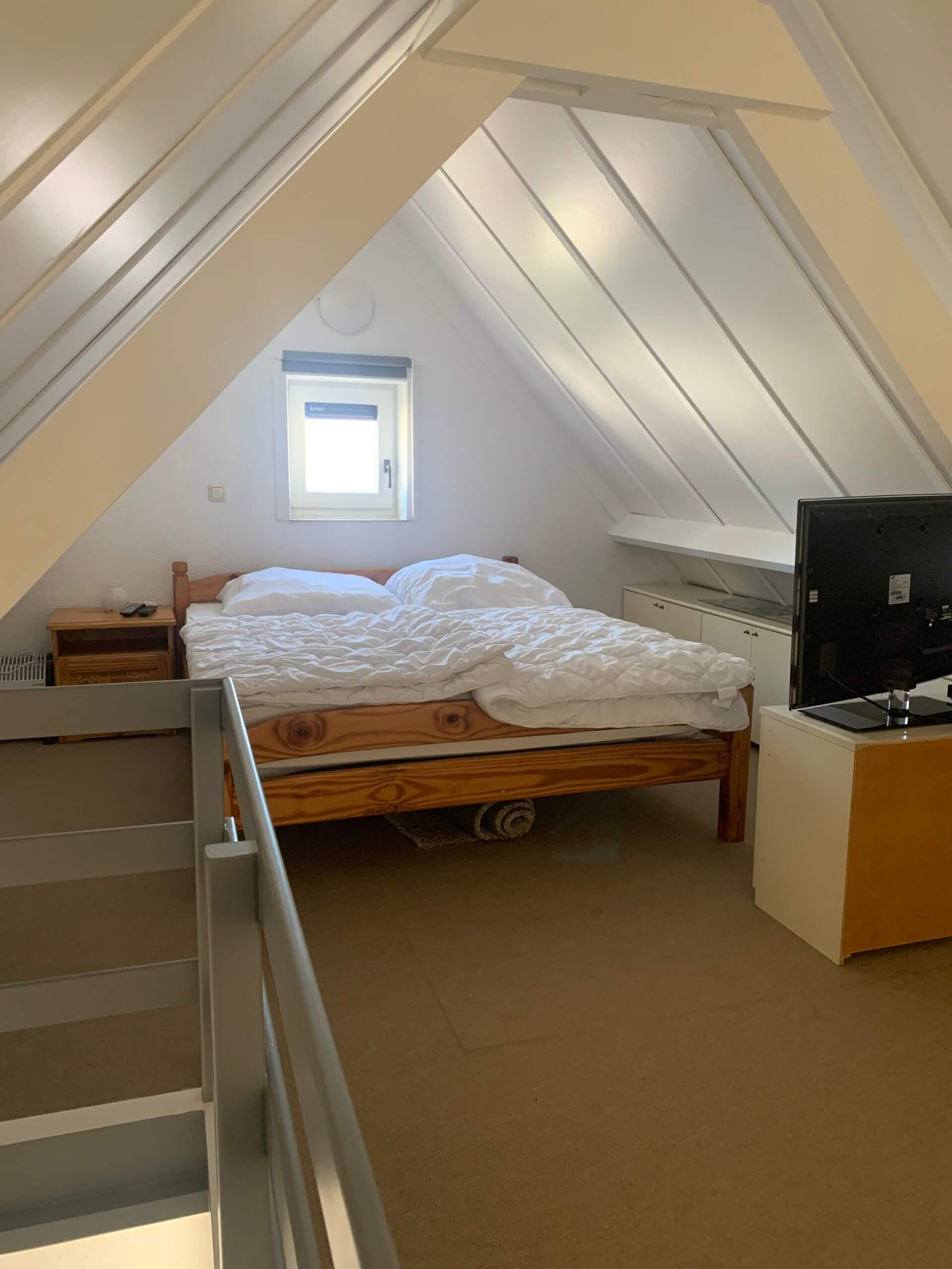 Unser Fischerhaus 38 verfügt über drei gemütliche Schlafzimmer, die jeweils Platz für zwei Personen bieten. Im ersten Schlafzimmer im Erdgeschoss stehen zwei Einzelbetten (90 x 200 cm). Das zweite Schlafzimmer, ebenfalls im Erdgeschoss, ist mit einem komfortablen Doppelbett (160 x 200 cm) ausgestattet. Ein weiteres Doppelbett (160 x 200 cm) befindet sich im offenen Schlafbereich der Galerie im Obergeschoss.