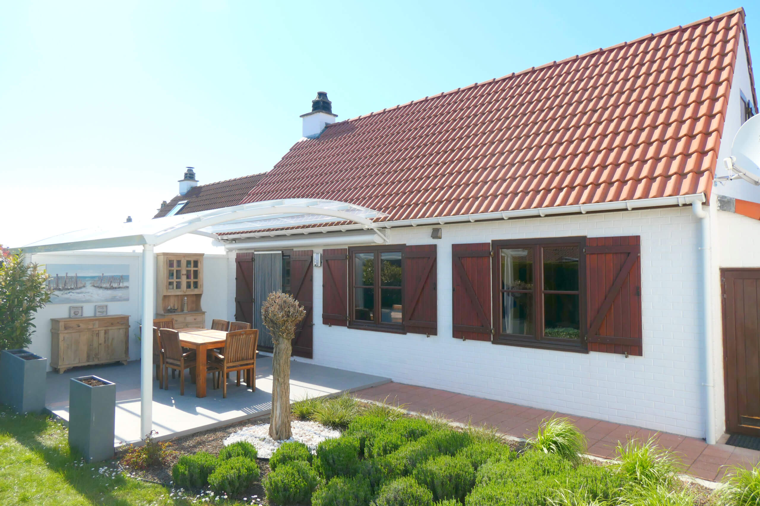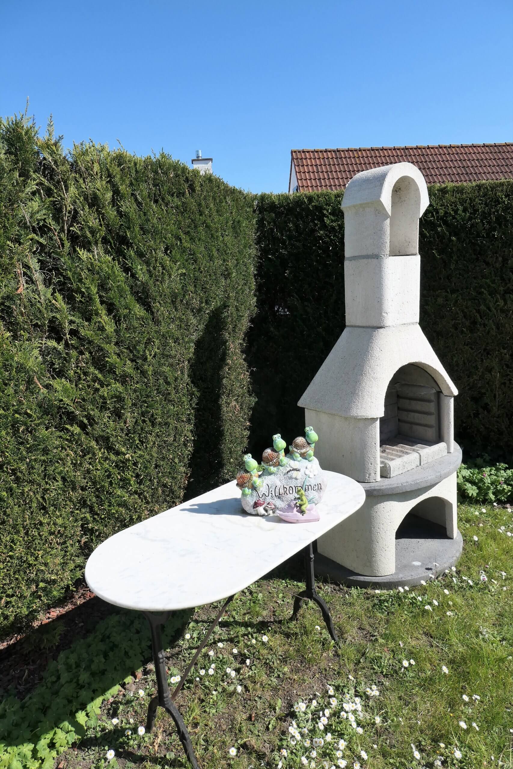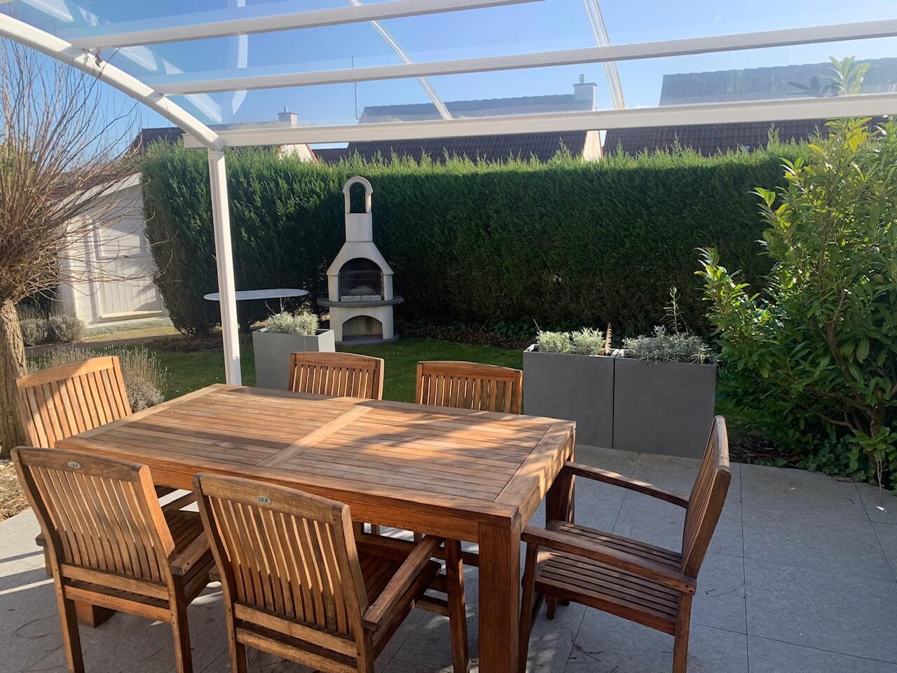 Selbstverständlich steht Ihnen kostenloses WLAN zur Verfügung. Ein fest reservierter PKW-Stellplatz mit direktem Gartenzugang sorgt für zusätzlichen Komfort. Im Garten lädt ein großer Tisch mit sechs Stühlen zum Verweilen ein – geschützt durch eine transparente Terrassenüberdachung. Für sonnige Tage bietet eine elektrische Markise zusätzlichen Schatten. Ein Grill steht ebenfalls bereit, um gemütliche Abende im Freien zu genießen.